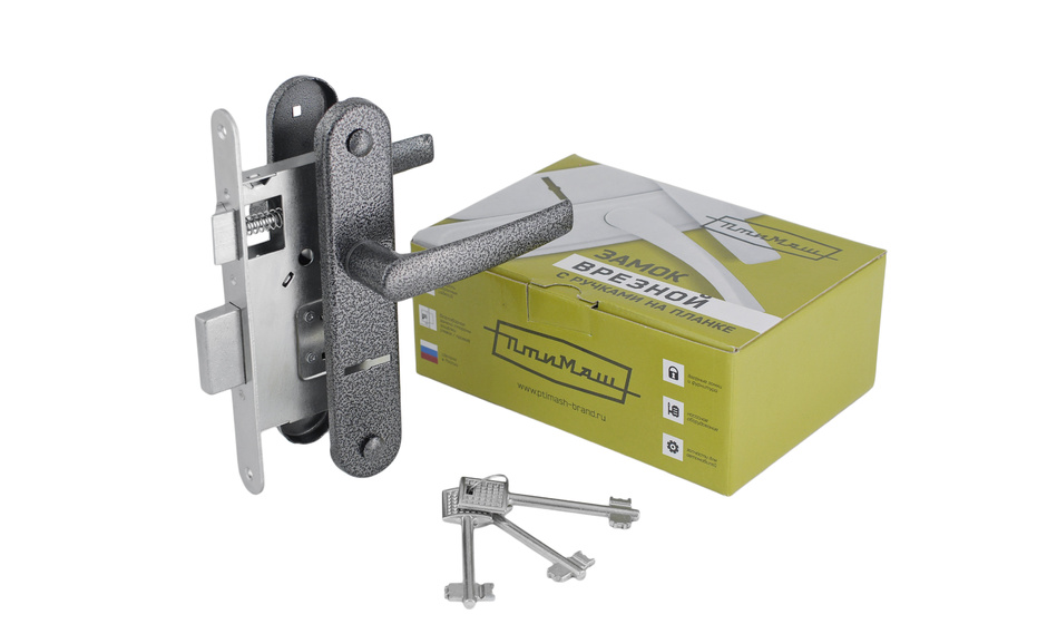 Замок врезной сувальдный ЗВ9 Птимаш комплектуется стяжками с винтами м5, что обеспечивает надежность при эксплуатации и простоту установки. Также замок ЗВ9 комплектуется удлиненными ключами выполненными из сплава ЦАМ, это позволяет устанавливать замок в двери с толщиной полотна до 65 мм.